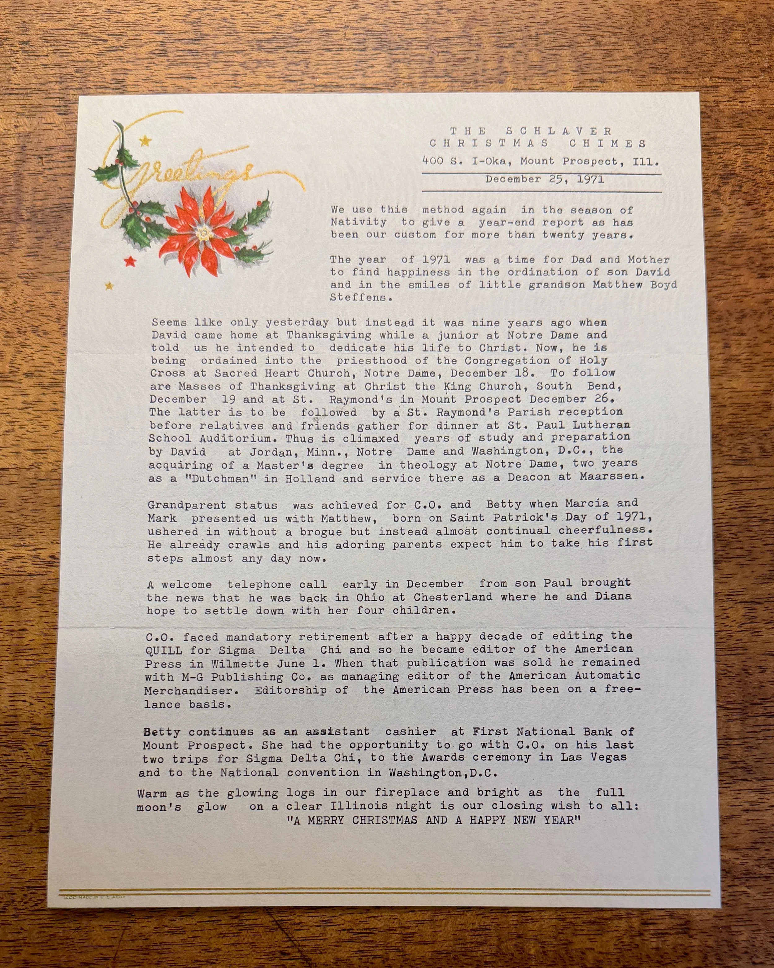 THE SCHLAVER CHRISTMAS CHIMES — December 25, 1971