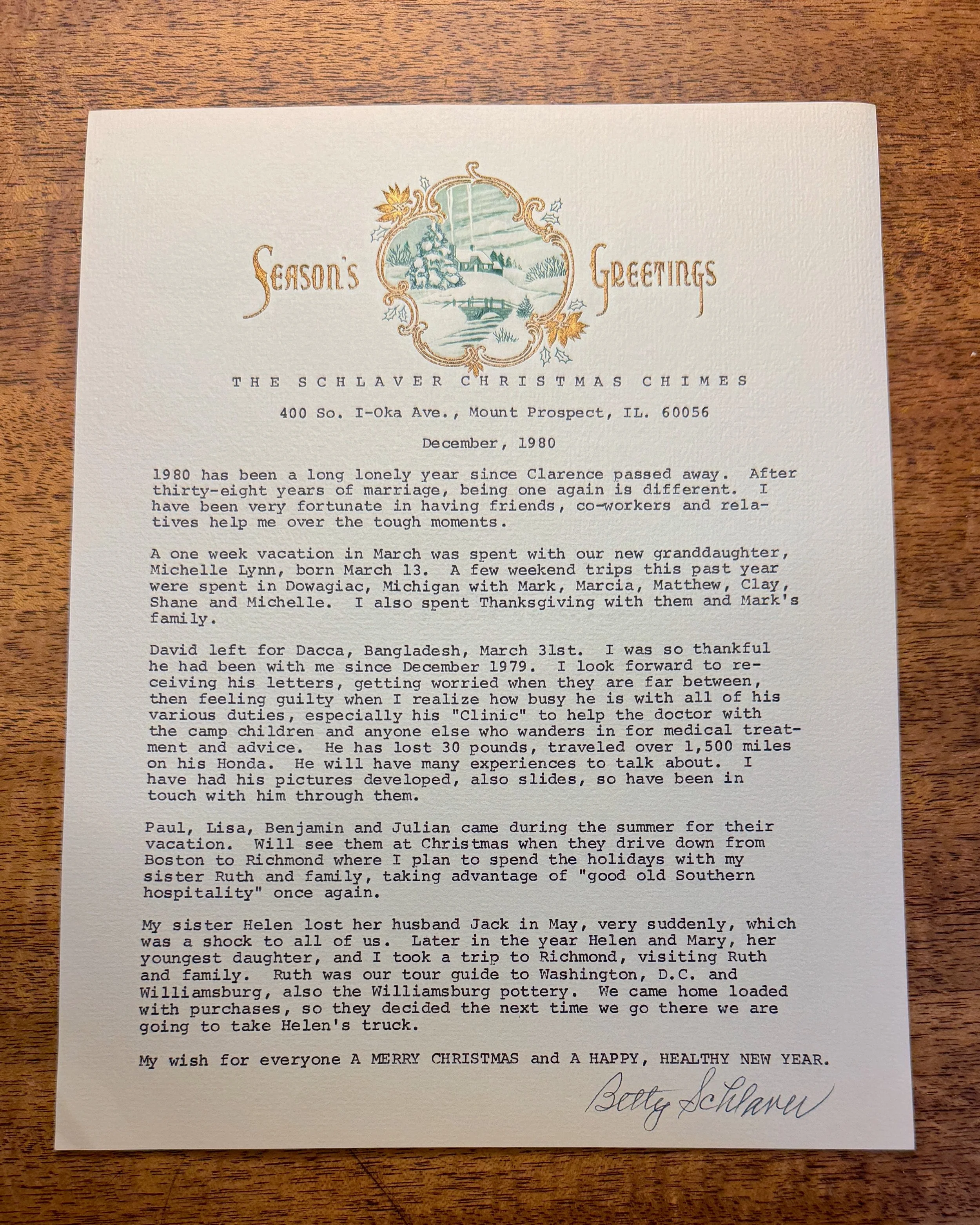 THE SCHLAVER CHRISTMAS CHIMES — DECEMBER, 1980
